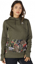 Dámská mikina Burton OAK Pullover je vyrobena z materiálu DRYRIDE Thermex™, který je vysoce prodyšný, rychleschnoucí, vodoodpudivý a hřejivý, díky tomu se tedy mikina dá využít také jako funkční. Mikina má příjemnou fleece podšívku, zvýšený límec, kapucu na stahovací šňůrku, velkou volně dostupnou klokan kapsu, manžety s otvorem na palec. Materiál: 100% polyester.