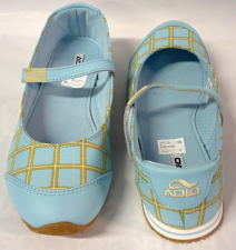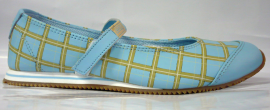 Dámské baleríny Adio model OPAL SKY BLUE PLAID. Boty mají přezku přes nárt na suchý zip a měkkou podrážku pro pohodlné nošení. Vyšívané logo Adio na patě a na přezce.
