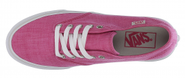 Dámské boty značky Vans CAMDEN STRIPE, mají povrch z pevné textilie, designová růžová barva, kovové kroužky pro snadnější šněrování s plochými tkaničkami, logo Vans našité na lemu boty, vysoká, gumová bílá podrážka s krémovým tenkým pruhem a logem na patě, vulkanizovaná a protiskluzová podrážka s ,,wafle,, vzorem.