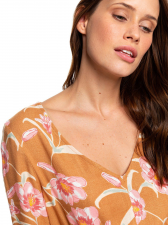 Dámské šaty od značky Roxy, model Heatin Up. Šaty nabízejí velice příjemný materiál, dlouhé rukávy s knoflíky na jejich lemech, pružnou gumu v pase, přední výstřih do tvaru V a kratší střih nad kolena. Šaty jsou navíc obohaceny o celoplošný design. Materiál: 56% bavlna, 44% viskóza.