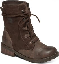 Dámské zimní boty značky Roxy DOLORES, vyšší kotníkové boty z kombinovaného materiálu: syntetické koženky a semiše, bavlněné dlouhé tkaničky, zavazování na kovová očka a háčky, detail loga Roxy na zadní straně, podšívka bot je ze 100% polyesteru, podrážka protiskluzová.