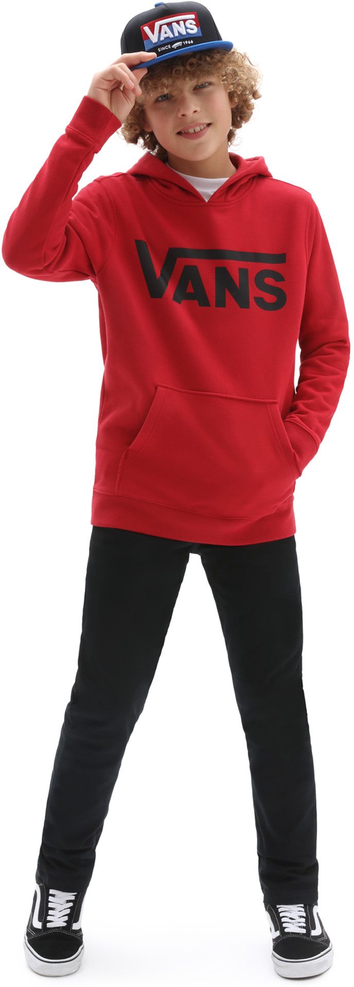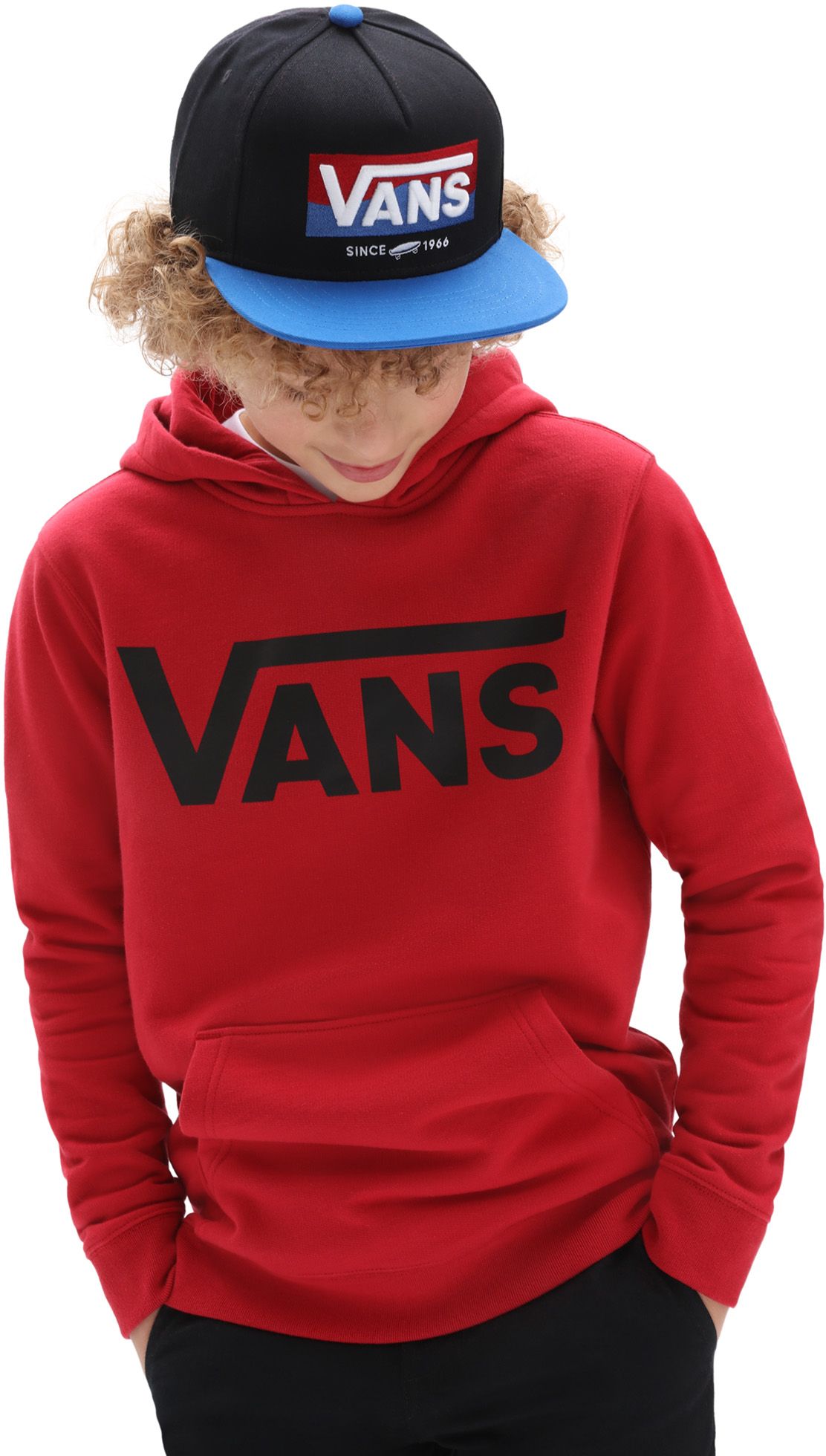 Dětská mikina od značky VANS, model CLASSIC - klasický klokan střih - ikonické logo značky tištěné na přední straně mikiny - kapuca není stahovatelná tkaničkou, v přední části volně dostupná velká kapsa. Materiál: 100% bavlna.