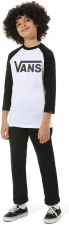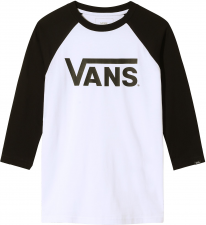Dětské triko od značky VANS, model CLASSIC RAGLAN je dětské triko moderního střihu označovaného jako raglan (3/4 rukávy). Triko má přes celý hrudník ikonický potisk loga značky. Stylové dvoubarevné provedení. Materiál: 100% bavlna.