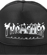 Pánská kšiltovka od kultovního Thrasher Magazinu ve spojení s legendárním Anti Hero, model Pigeon Mag. Kšiltovka v oblíbeném trucker střihu - zadní část kšiltovky tvoří odvětrávací síťka. Design kolaborace na předním panelu. Díky plastovému nastavování v zadní části je kšiltovka univerzální velikosti. Materiál: 100% polyester.