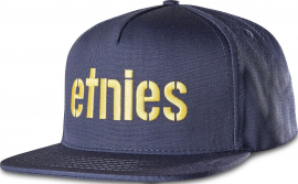 Pánská kšiltovka od značky ETNIES, model CORP. Oblíbený snapback střih s rovným kšiltem a plastovým nastavováním v zadní části čepice, velké logo značky vyšité na předním panelu. Univerzální velikost díky plastovému nastavování v zadní části čepice. Materiál: 65% polyester, 35% bavlna.