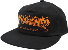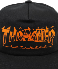 Pánská kšiltovka od kultovního Thrasher Magazinu ve spojení s legendárním Anti Hero, model Pigeon Mag. Klasický snapback panel, odvětrávání podél celého obvodu - univerzální velikost díky plastovému nastavování v zadní části kšiltovky. Design kolaborace na předním panelu. Materiál : 100% bavlna.