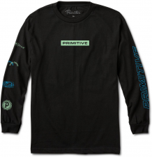 Pánské tričko od značky PRIMITIVE SKATEBOARDS, model DEMO - dlouhé rukávy, design s logem značky tištěný na přední straně, obou rukávech a zádech. Materiál: 100% bavlna.